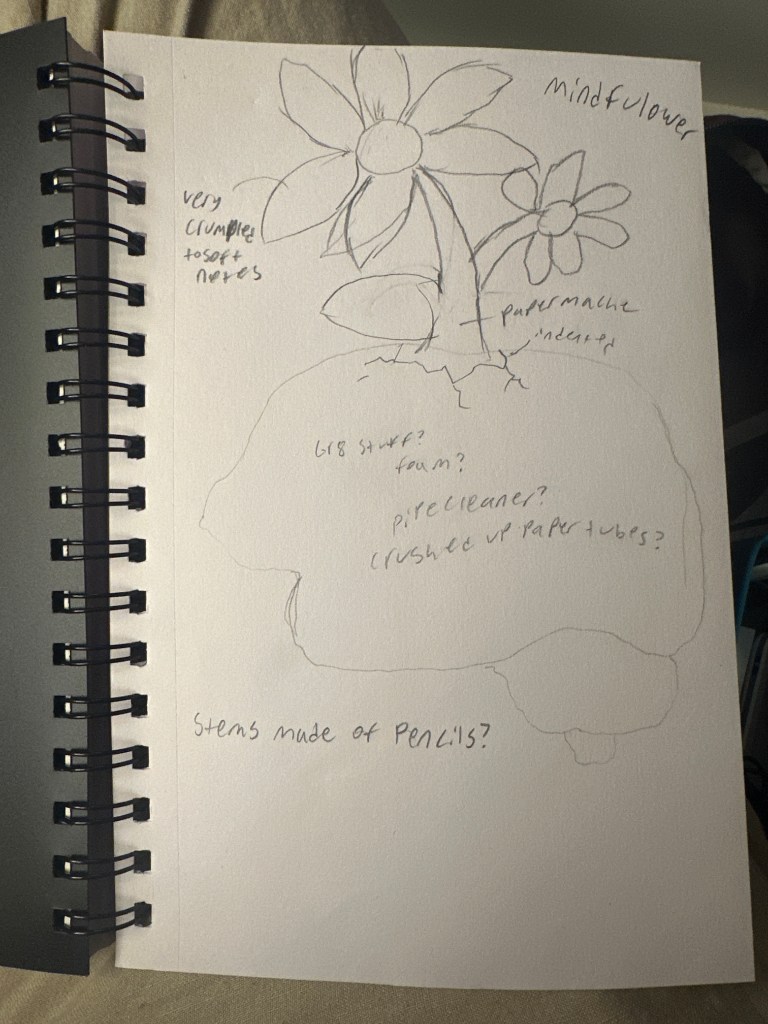 - Finish Paper Macheing the Bloomshroom, Close to done on Mindfulower, and Pollinator.